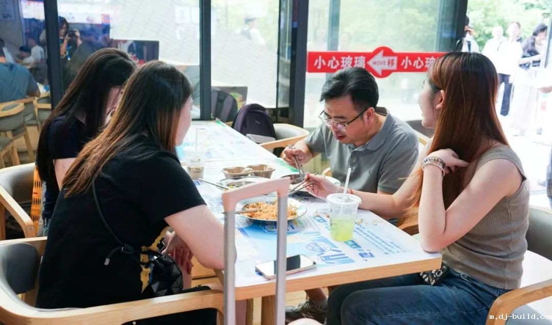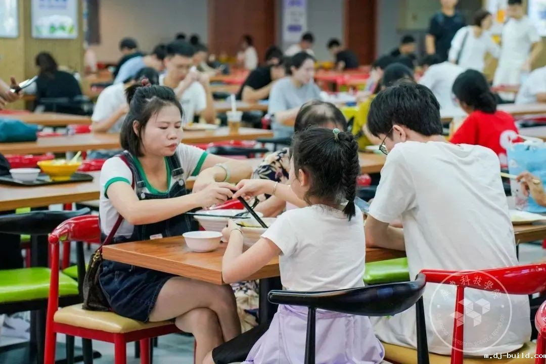 他们一起在温馨的学校饭堂